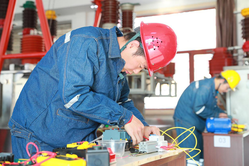 维修电工技术比武的参赛选手们各显身手,根据提供的元器件精心设计电路图,按照设计在接线板上完成实操接线,在毫厘之间展现精湛技艺。