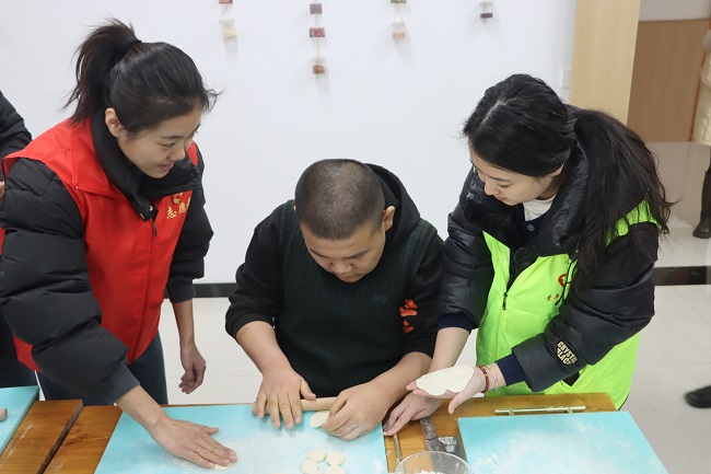 活动中,在学校负责人的带领下,党员志愿者参观了校区教室、训练室、活动室和康复室等场地。党员志愿者为孩子们送去文具、玩具、头饰等小礼物,陪孩子们做游戏,让孩子们在互动中锻炼社交能力,增强他们的自信心。党员志愿者还与孩子们一起动手包饺子,饺香四溢,情暖人心,孩子们脸上的笑容温暖了冬日,也温暖了在场的每一个人。