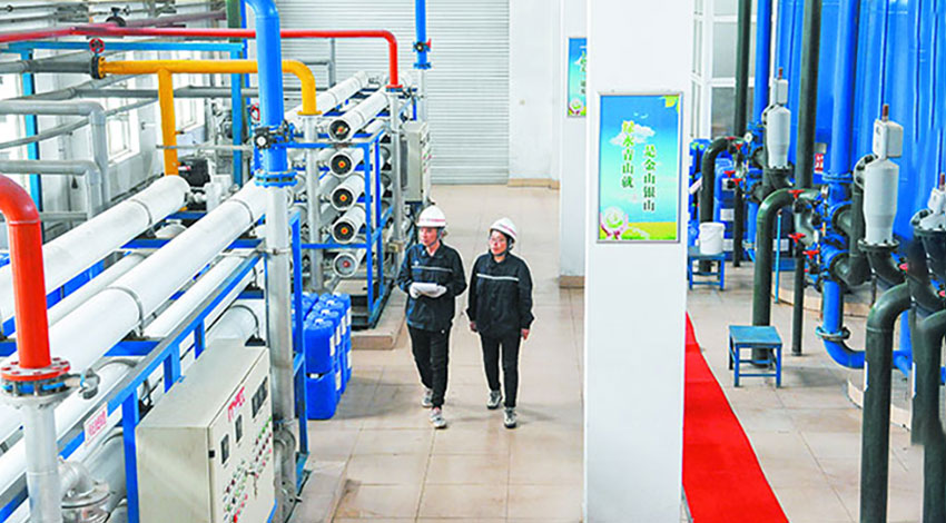 赵庄煤业公司牢固树立和践行“绿水青山就是金山银山”理念,全方位构建井上井下一体化环境治理体系。通过系统化实施生态修复工程、智能化升级环保设施、常态化开展环境整治行动,持续提升矿区生态治理水平。同时,高标准推进绿化景观建设,全周期强化矿区净化管理,打造“天蓝、地绿、水清、景美”的现代化生态矿山新样板。图为污水处理厂职工巡检反渗透车间设备运行情况。