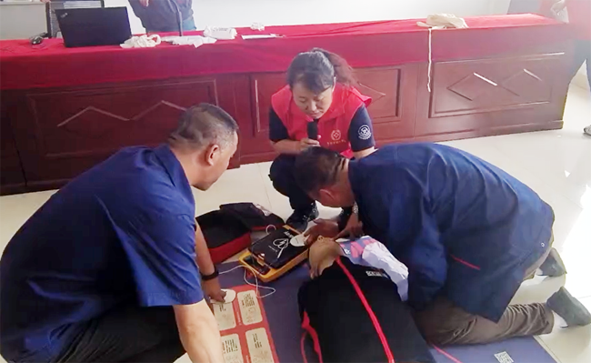 在实操培训现场,老师手持模拟人教具、AED设备,一边耐心讲解操作步骤,一边进行规范演示。“止血时一定要找准动脉位置,力度要适中。”老师的叮嘱在现场回响。参训人员分组进行实操练习,他们眼神专注,按照步骤对“伤员”进行止血、包扎、固定和搬运。有人手法略显生疏,在老师指导下反复调整;有人操作流畅,还主动帮助同组伙伴纠正细节。大家你一言我一语,在互相学习中共同进步,现场“实战”气氛浓厚。