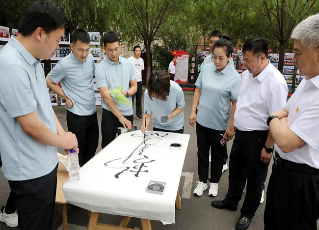 健美操比赛结束后,大家来到潞阳公司“潞阳党旗红”摄影、书画、剪纸作品展现场。现场设置8个展区,共展出摄影作品476张、书法作品52幅、绘画作品39张、剪纸作品33张,多元化地展现了公司在党的建设、安全生产、经营管理、科技创新、文化建设、民生实事等十个方面取得的成绩。120名艺术爱好者通过笔墨光影,从艺术视角全方位、多角度、深层次展示潞阳公司昂扬向上的良好风貌,抒发建功新时代、奋进新征程的壮志豪情。