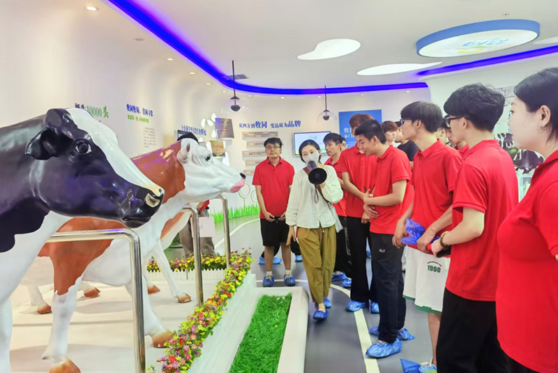 本次实践活动的最后一站为大同市牧同乳业有限公司。四方牧场里标准化的养殖流程保障着原奶的天然纯净;现代化生产车间内原奶检验、无菌灌装、智能流水线、全链路品控体系,让师生们见证了一杯牛奶背后的标准化生产链条,感受到本土企业在带动农业增效、保障民生供给中的责任担当,对“产业赋能乡村振兴”的内涵理解愈发清晰透彻。