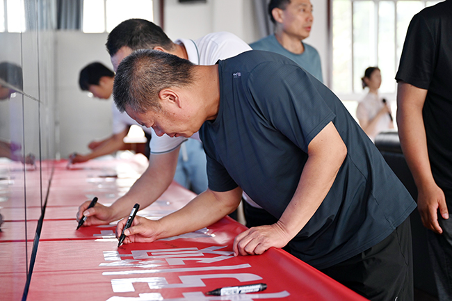榜样的力量激荡起深层的共鸣。在谈感悟环节,该公司两位来自不同岗位的职工分享了学习体会,表达了将安全责任与爱企情怀落到实处的坚定决心。思想的碰撞后是行动的承诺——全体与会者庄重地在安全责任承诺条幅上签名,许下守护安全、担当奉献的无声誓言。