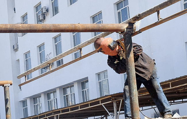 “想想以后停车再也不用风吹日晒,浑身带劲。”胡师傅焊枪火花跳动,熔渣一冷就用扁铲铲平,再用砂纸磨出顺滑弧度。车间轰鸣中,钢管被切割、打磨、拼接,渐成停车棚骨架。