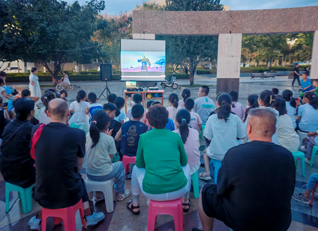 图为露天放映电影活动。
