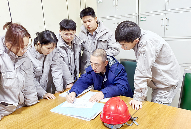 近日,在侯马热电分公司发电运行部培训室内,部门锅炉专工正俯身桌前,以笔为导,在一张铺开的白纸上流畅绘制锅炉汽水系统示意图。他边画边讲,从汽包到顶棚管入口集箱,从后烟道前包墙下集箱到低温过热器入口集箱,将复杂的系统流程转化为清晰的线条与标识。巡检员站在一旁,目光紧随笔尖,在图纸上直观追踪汽水的每一段流程。巡检员不时提问,专工则在图上补充细节,使抽象原理跃然纸上。这场别开生面的“纸上谈兵”,以最朴素的方式,实现了系统脉络的可视化与深度解析。