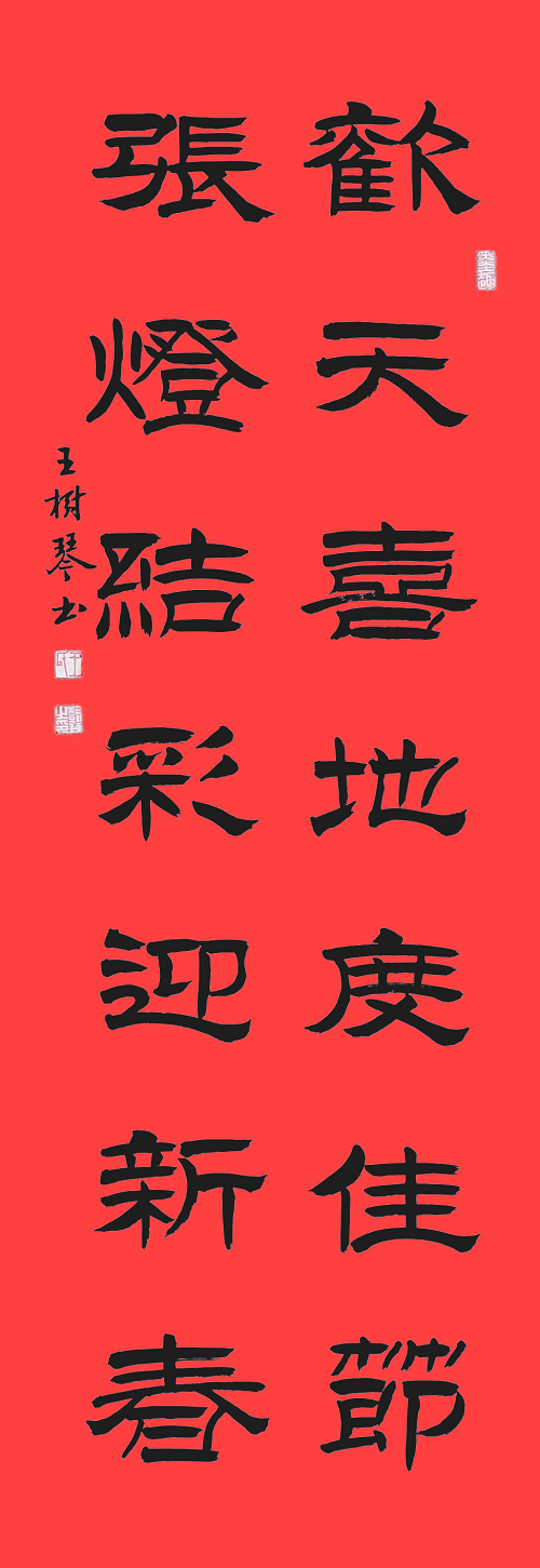 欢天喜地度佳节 张灯结彩迎新春(书法) 作者:王树琴