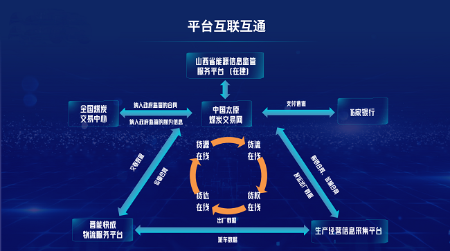 将原先的数字物流平台调整定位为大宗货物公路运输服务科技型平台,并推动平台与煤炭生产经营信息采集平台和中国太原煤炭交易中心电商平台实现信息数据互联互通共享,煤炭生产经营信息采集平台采集前端数据;物流科技平台连接能源产业供需双方,构建物流服务网络;交易中心电商平台衔接交收履约、竞价交易、费用结算、数据分析,通过这三个平台的互联互通,初步构建起集煤炭生产、加工、销售、铁运、物流、贸易等业务于一体的数字化平台,实现了货源、货流、货达、货权全程线上运行,畅通了物流衔接、金融服务、数据管理、业务管理全流程,构建起全周期管理煤炭生产、运输、销售新模式。