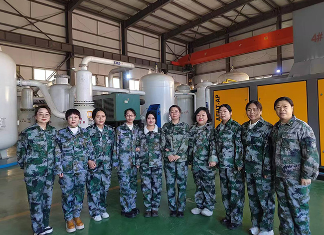 该班组经常通过班前会、专项培训、周四安全会等多种形式,强化学习,以此来增强女工们的安全意识。她们每天严格按照定检图表,做好设备及其附属设施的巡机检查及记录,定期进行事故应急演练,并配合检修时进行倒机操作,轮替开启2套制氮系统保证备用,保障大型设备完好。去年6月份的一天,工作人员当班期间,空压机突然停机,两人一指挥一操作多次配合都无法再次启动的情况下,立即通知值班干部并倒机,备用机重启后她们没有原地等待,而是观察后找原因按照所听、所学知识对该空压机进行了两次人工清吹,由于当时人少且力量较小的原因效果不佳,在技术主管和检修人员到来后,同样给出了人工清吹的方案,她们没有置之一旁,积极投入到清吹冷却散热器的过程中,前后共用了不到15分钟完成了空压机器重启。通过这次意外,她们在周四的安全学习会上总结并分享了经验,同时也在实际工作中学习到了新知识,并将清吹散热器添加到了每日工作中成为常态化,有效避免类似事件发生。