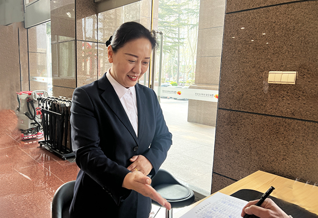 “把顾客当上帝”“要想用户之所想,急用户之所急”这是吕海霞想要给大家灌输的思想以及要变为现实的事。她积极筹备,通过竞聘上岗择优录取,规范着装,统一服务形象;增加上下班鞠躬问候、迎送服务,在访客等待时提供茶水服务,为访客提供电梯引领等,增设会客接待区、物品寄存、便民急救箱、充电宝、雨伞雨具等便民服务设施,从这些细微之处的改变让用户有被理解和尊重的感觉。