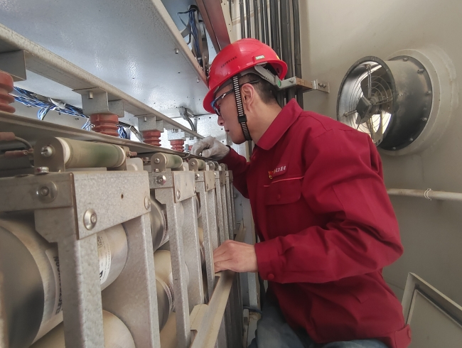 2022年8月13日,该风电场35kV#1SVG开关发生跳闸故障,杨振华立刻带领值班员对设备故障点进行排查测试,发现其中一相IGBT门极板烧坏。故障处理完,所有人都认为这项工作结束了,但他参考历年来#1SVG运行工况及SVG历年来的故障记录、坏件情况等,总结出夏天雨季SVG室内湿度高,容易出现SVG模块在运行时电压不稳定现象,经过和厂家技术部沟通,他提出将SVG功率模块柜改为半内部循环模式运行,可以有效地降低湿度。整改方案编写、技术人员衔接、具体实施,每一个环节他都亲力亲为。最后,经过技术改造,大大降低了功率柜湿度,彻底解决了模块运行中电压不稳定容易发生故障的情况。截至目前,无功补偿装置未因湿度原因造成过故障。这便证明了杨振华是一个极其善于思考、钻研的同志,他往往能想到别人想不到的地方。