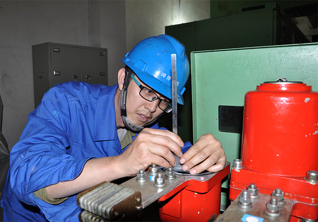 电气班负责全厂高压电机及高压配电设备,而开关的维护,对他们来说是不轻松的工作。因设备频繁启动、老化设备构造等原因常造成开关断路、掉闸。为了找到故障原因,攻克难关,从增加定检次数开始,每台设备从每月一台/次,到每月两台/次,最后增加至每周一台/次。每一次开关定检他都参与其中,他从开关一丝一毫的痕迹开始查找问题原因。他说“这是对工作的尊重,更是对自己负责”。