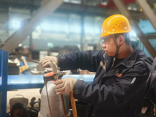 日常管理学习中,王国鹏带领班组成员参照技术工艺流程卡进行各岗位工作部署,最大限度优化设备运行,为整机配套、自制工件焊接打下了坚实的基础。