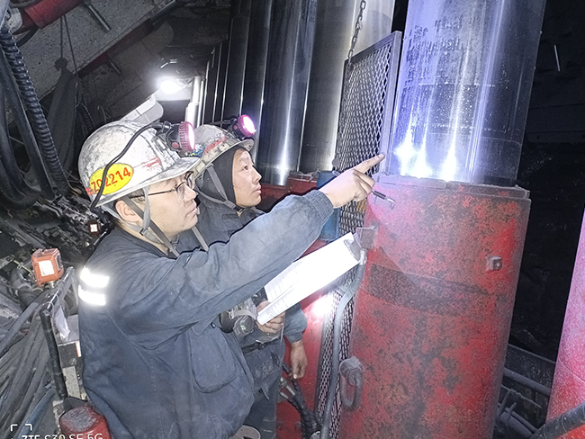 作为综采二队生产二班的“主心骨”,刘鹏在工作和学习中严格要求自己,他凭借个人细致的观察能力和极强的创新意识,先后提出并参与实施了一系列技术改进措施,捋顺了工艺流程,提高了设备效能,为生产提质增效奠定了基础。自2023年下半年进入4323工作面以来,工作面多处条件受限,先后揭露多处复杂的地质构造。在过大断距断层时,机组割不动硬矸,条件十分恶劣。面对困难,刘鹏通过召开班组动员会,锚定目标、鼓舞士气,给全班成员打了一剂“强心针”,为班组冲刺阶段吹响“冲锋号”。不仅如此,刘鹏迎难而上,一马当先,日复一日带领班组成员组织松动爆破,通过调整工作面采高、注化学浆加固煤帮、对断层区域上下盘挑顶卧底等措施,解决了工作面过构造存在的疑难杂症,有效控制住回采过程中的困难局面,为队组攻坚克难做出突出贡献。